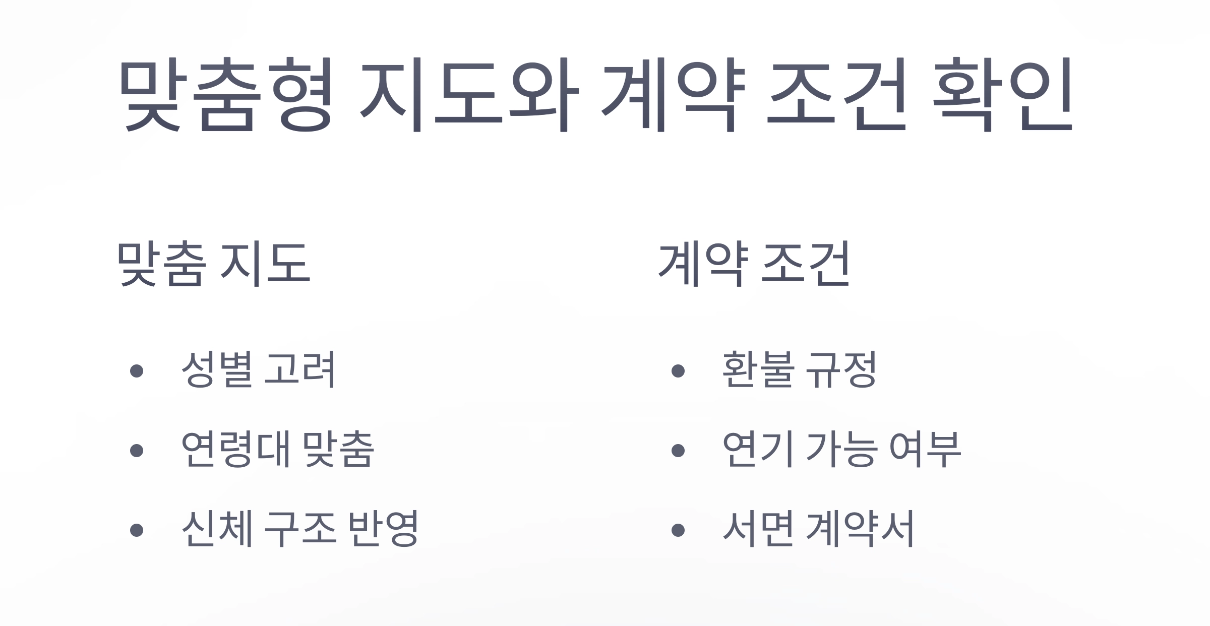 내 연령대, 생활습관, 근골격 구조 등을 고려한 개인화된 프로그램이 가능한 트레이너인지 꼭 점검해 보세요.