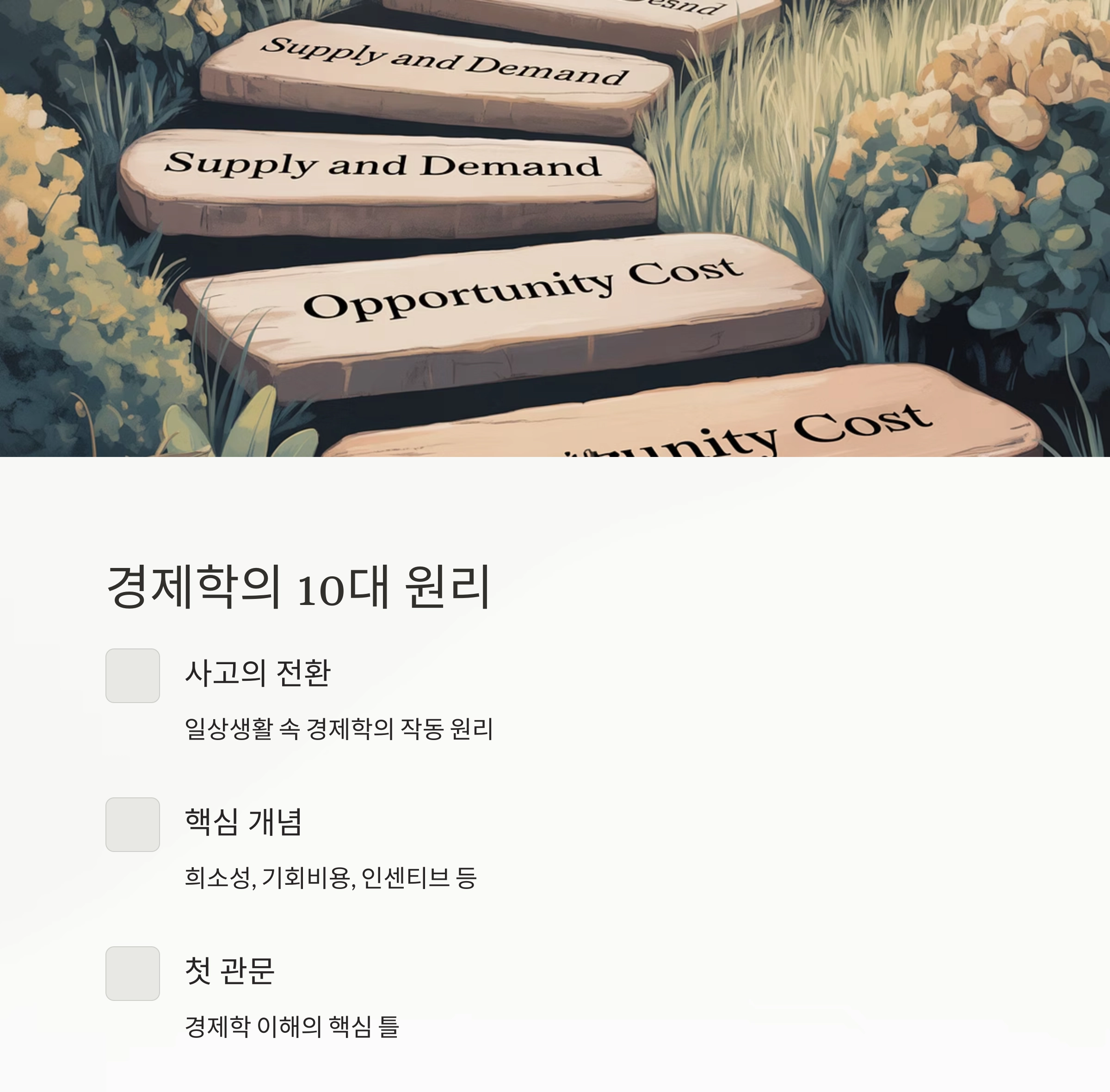 | 경제 원리 요약표 | 10대 원리 요약 및 각 장과의 연결성 강조 |