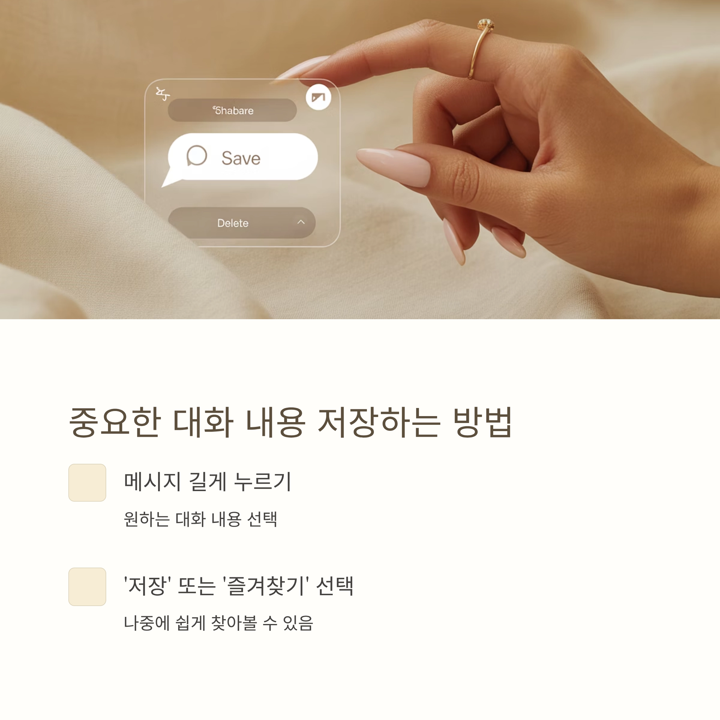 필요한 메시지를 길게 누르면 '저장' 또는 '즐겨찾기' 기능이 활성화됩니다. 이렇게 저장한 내용은 나중에 쉽게 찾아볼 수 있어 메모 대신 활용 가능합니다.