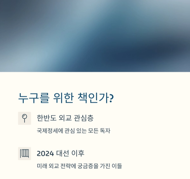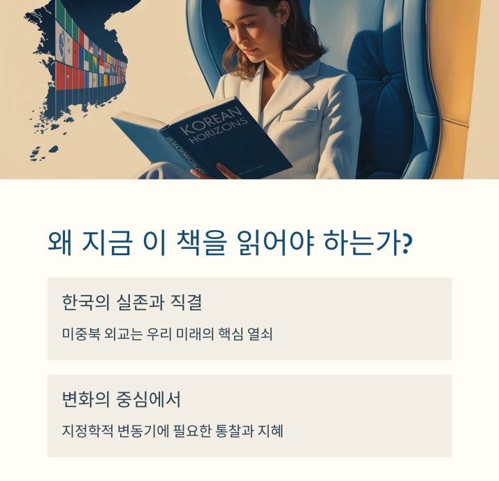 그런 점에서 이 책은 한국의 현실을 냉정하게 직시하게 해 주며, 앞으로의 방향을 고민하는 나침반이 되어줍니다. 외교가 복잡하다고 느꼈던 독자에게도, 이 책은 이해를 돕는 친절한 안내서가 될 수 있습니다.