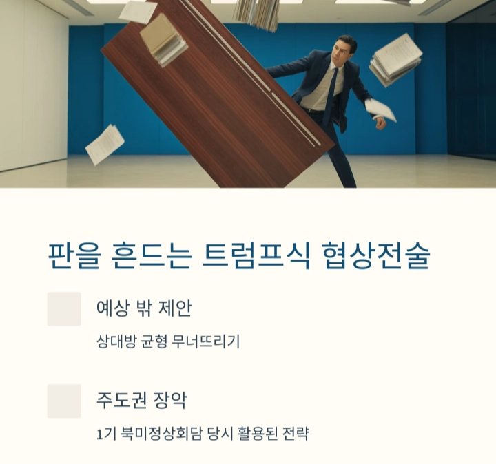 | 감정적 언행 속 전략이 숨어 있는 거래 중심 방식 | 메시지를 조율하며 협상 주도권을 노리는 전략 | 다자외교, 전략적 중립, 국익 중심으로 전환 필요 |