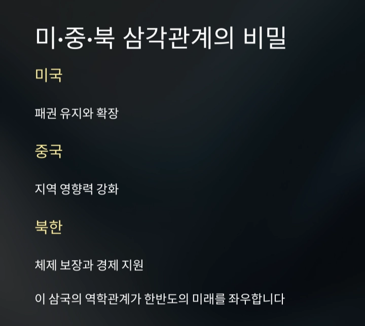 후반부에서는 트럼프가 다시 대통령직에 복귀할 경우 예상되는 외교적 시나리오들이 구체적으로 제시됩니다.(이미 재선에 성공함). 방위비 분담 문제, 주한미군 재배치, 북핵 협상 방식의 전환 등은 모두 한국 외교에 있어 중대한 도전 과제로 다뤄집니다.