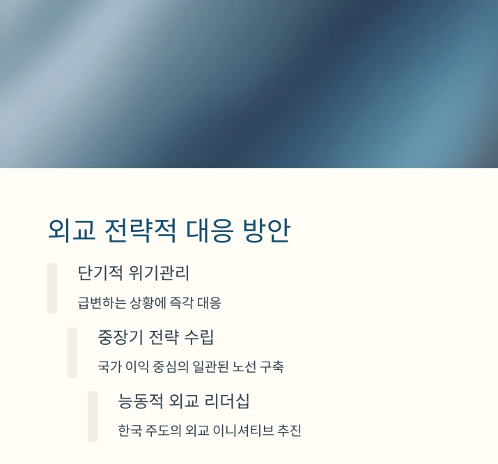 | 한국의 외교 대응 | 다자외교와 전략적 중립으로 주체적 전략 필요 |